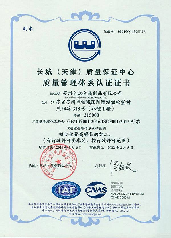 星空体育-星空(中国)一站式服务平台成立于2013年3月,注册资本500万元,是一家从事铝合金登高工具生产及销售的企业,星空体育-星空(中国)一站式服务平台坐落于“人间天堂”苏州市,毗邻阳澄湖度假区,交通十分便利。在铝合金产品加工有着很深厚的底蕴和丰富的经验。同时是铝合金登高产品解决方案的供应商。公司通过ISO9001质量管理体系认证,将公司发展的步伐向前迈进一步。